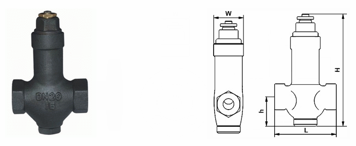 可調恒溫式蒸汽疏水閥外形結構圖: