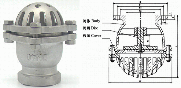 螺紋底閥由閥體,閥瓣,閥蓋,襯套,密封圈等零件組成,詳見下圖水源的水從閥蓋進入閥體。在流體的壓力作用下,閥瓣打開水,當示停后出口管內的壓力將閥瓣迅速關閉,液體將不會倒回水源,起到了即暢通抽水又節約水能損失的作用。