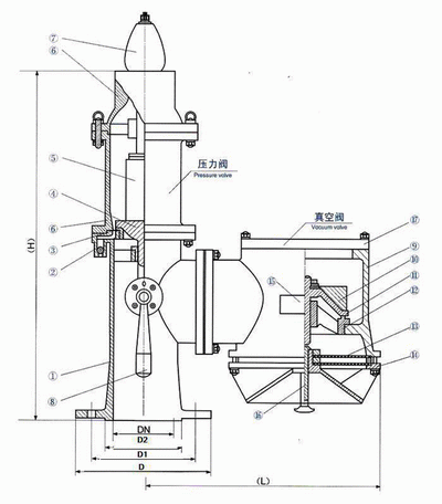 當貨油艙卸貨作業(yè)時,艙內(nèi)就會形成真空(負壓),當負壓達到真空閥設(shè)定開啟壓力時(一般為-3.5KPa),閥門就會自動打開,此時空氣經(jīng)防火網(wǎng)流入貨油艙內(nèi)。