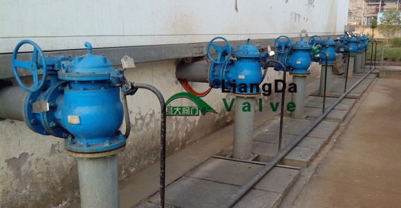 隔膜式快開排泥閥又稱膜片式快開排泥閥,是一種由液壓源或氣動源作執行機構的角型截斷類閥門通常成排安裝在沉淀池底部外側壁,用以排除池底沉淀的泥砂和污物。膜片式快開排泥閥由尼龍強化橡膠隔膜將閥門分為兩個腔室,接通液壓或氣動源,采用電動或手動二位四通換向閥控制,實現快速排泥。該閥將隔膜代替活塞無運動摩擦,更適用于泥漿等顆粒介質,大大提高了閥門的使用壽命。隔膜式快開排泥閥安裝示意圖:
