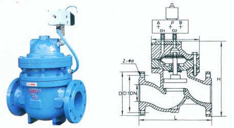 電磁液(氣)動隔膜排泥閥外形結(jié)構(gòu)圖: