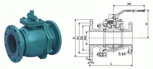 法蘭襯膠球閥外形結構圖: