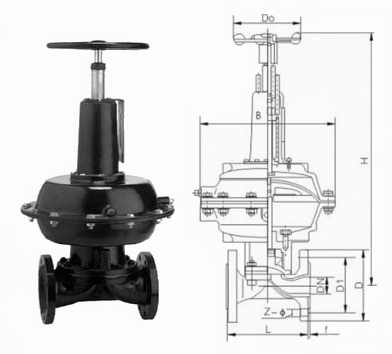 英標常閉式氣動襯膠隔膜閥外形結構圖: