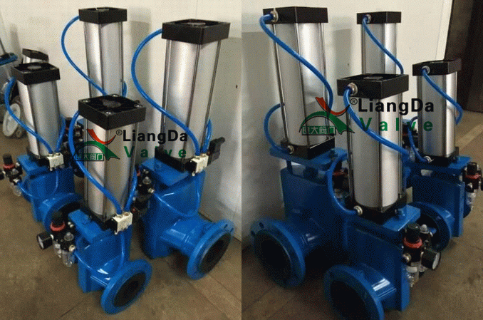 氣動頭通氣時,使閥桿向下運動來帶動上下壓板以壓縮套管進行關閉,反之即開啟。壓板在拉桿之間上下往復運動完成閥門開閉工作。