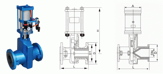 氣動(dòng)管夾閥外形結(jié)構(gòu)圖:
