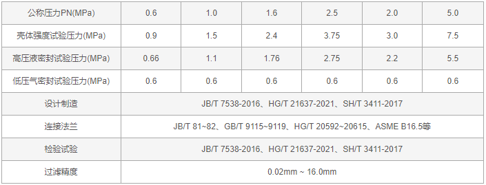 直角式自動反沖洗過濾器性能規范表: