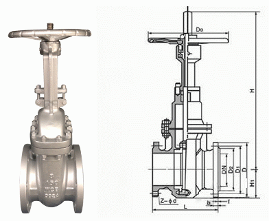 美標手動閘閥外形結構圖: