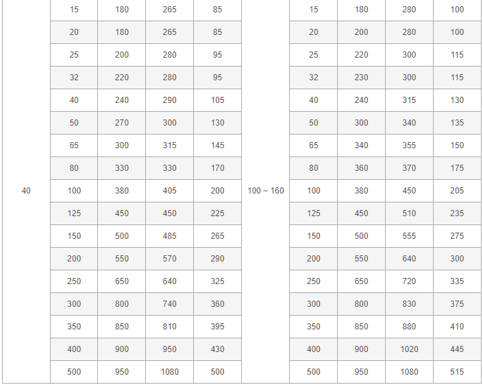高靈敏度大流量蒸汽減壓閥外形尺寸表: