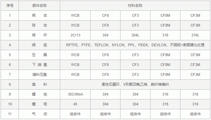 不銹鋼氣動(dòng)V型球閥零件材料: