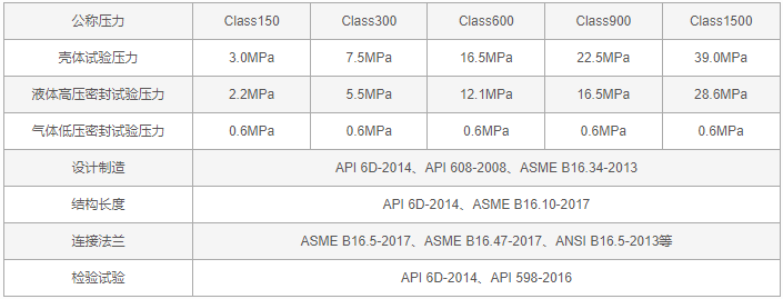 美標固定式球閥產品的設計和制造符合《API 6D-2014管線和管道閥門規范》、《API 608-2008法蘭、螺紋和焊連接的金屬球閥》、《ASME B16.34-2013法蘭、螺紋和焊接端連接的閥門》要求,其結構長度可采用《API 6D-2014管線和管道閥門規范》、《ASME B16.10-2017閥門結構長度》等,連接端按照ASME B16.5、ASME B16.47、ANSI B16.5、ASME B16.25等尺寸,檢驗和試驗遵循《API 6D-2014管線和管道閥門規范》、《API 598-2016閥門的檢查和試驗》標準。
