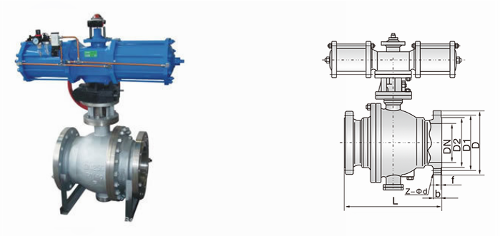 氣動固定式球閥由固定球閥和氣動裝置及附件兩部分組成,它的球體支撐方式為固定式,具有轉矩小、閥座變形小、密封性能穩定及使用壽命長等特點。其借助驅動裝置在閥桿上端施加一定的轉矩并傳遞給球體,使球旋轉90°,球體的通孔與閥體通道中心線重合,球閥便完成了全開或全關的動作。該閥可按客戶要求配置閥門開關信號裝置,從而實現遠距離自動控制,可滿足微機自動操作的需要。