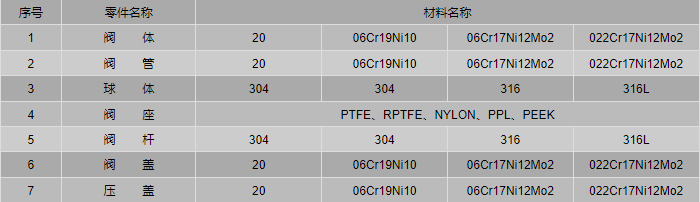 鋼管焊接球閥零件材料: