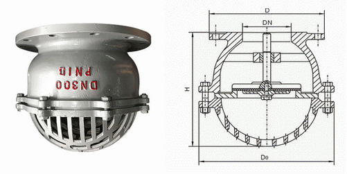 升降式底閥是一種節約能源的閥,一般安裝在水泵水下吸管的底端限制水泵管內液體返回水源,起著只進不出的功能。閥蓋上有很多個進水口和加強筋起到了不易堵塞,主要應用在抽水的管路上水道和支承的作用。安裝在水泵底部防止水的倒流,連接方式有法蘭連接和螺紋連接。