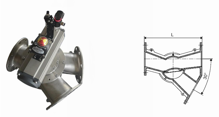 三通換向閥根據工況需要,將兩出口端之間的夾角設計成30°、45°、60°、90°、120°及其他角度等,可配置AT、GT、AW雙作用氣動執行器。尊敬的客戶!如果您需要訂購我公司三通換向閥產品,請說明公稱尺寸、壓力等級、閥體材質、內件材料、流道角度、使用溫度、法蘭標準及法蘭密封面形式等。