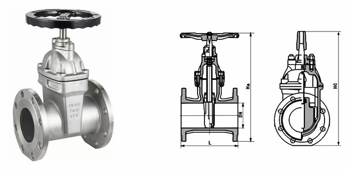 不銹鋼暗桿閘閥外形結(jié)構(gòu)圖: