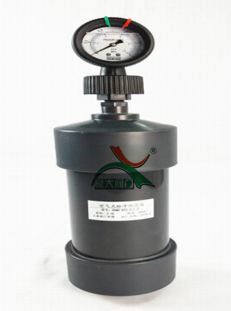 空氣式脈沖阻尼器是一個密封的罐體,依靠液體直接壓縮罐內的空氣起到緩沖的效果。空氣式阻尼器最大的弊端就是里面的空氣會逐漸溶解到輸送介質中,導致可壓縮的空氣越來越少,能起到緩沖的作用也隨之減小,需定期將阻尼器從設備上拆卸后排空里面的介質,保證內部的空間,所以在使用過程中維護稍顯麻煩。但是其價格相對低廉,所以適合一些對緩沖要求不是太高的系統使用。容積選型方法:每次沖程的容積數(毫升)乘以26,即得到能減小90%脈沖的最小容積。廣泛的應用于水處理、環保、電力、化工、反滲透、造紙等行業。