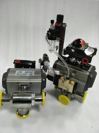 Q684F氣動快裝L型三通球閥用于青島啤酒閔行基地車間生產線