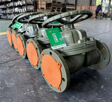 項目應用產品:襯氟隔膜閥,口徑:DN100,型號:G41F46-16C,材質:碳鋼,壓力:PN1.6MPa,適用介質:酸堿腐蝕性液體等,適用溫度:120℃。